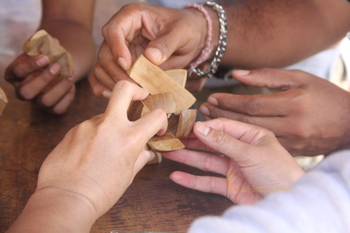 We provide full great lunch menu covered beautiful panorama of rice field, the lunch time will be perfect with amazing closing games. This games is reconstruct two shape of wooden puzzle.