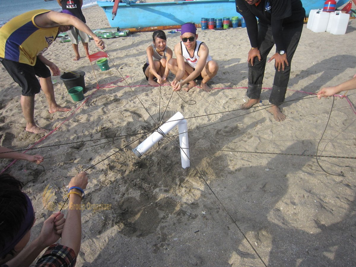 Bali Raft Building Game is one of the exciting games on Team Building Activities for group by constructing the traditional raft for evacuation each of group participants to assembling point. It is one of the fantastic team building games to encourage all group participants to force their ability, creativity and spirit of life struggling to win the game. Our team building games are creatively created by creator teams to build a strong and solid teamwork, improve adaptability, communication, individual confidences, speed of work, working environments and focus on company’s goals. These games are not only beneficial for participant’s personality but also good for company or organization to increase the productivity.