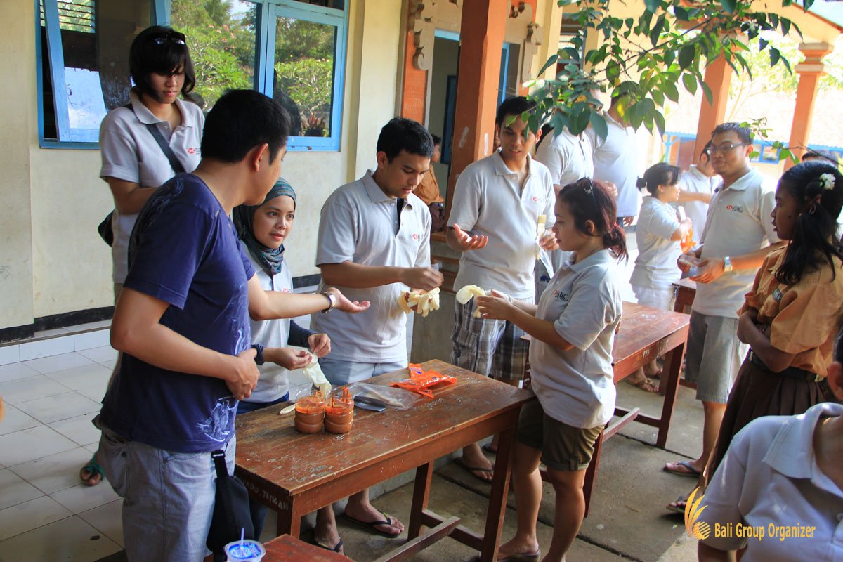 Bali CSR or Bali Corporate Social Responsibility is a new trend of group travelers to go for charity program. This social activities is a right way to do when traveling to Bali as a company/organization’s responsibility against the social environment. CSR (Corporate Social Responsibility) is a form of company or organization sense of responsibilities toward the environments and local communities where the company is located. This activity is also able to be executed at the time of road shows, meetings, seminars, conferences, incentive even though holiday trips. This is a social activity that can be attributed to the company culture or the social services to the local communities. As a leading event planner, Bali Group Organizer is delighted to arrange CSR Programs to the local communities in this island with the solutions to facilitate your social activities on your trip to Bali.