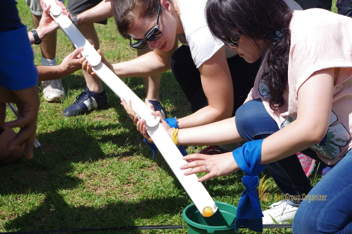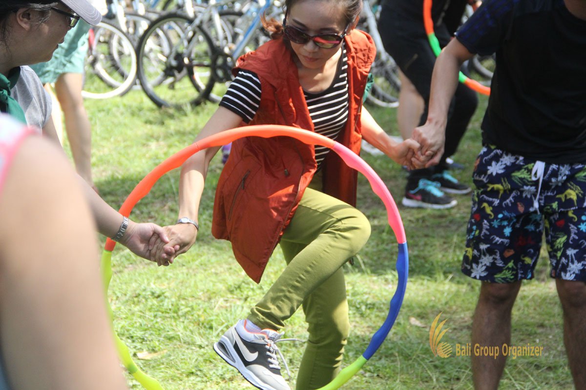 Bali Cycling Treasure Hunt Games is also complete with team building challenge. This challenge is one of the step to become closer with the hidden treasure. The participants must break this challenge and work together in a solid team.