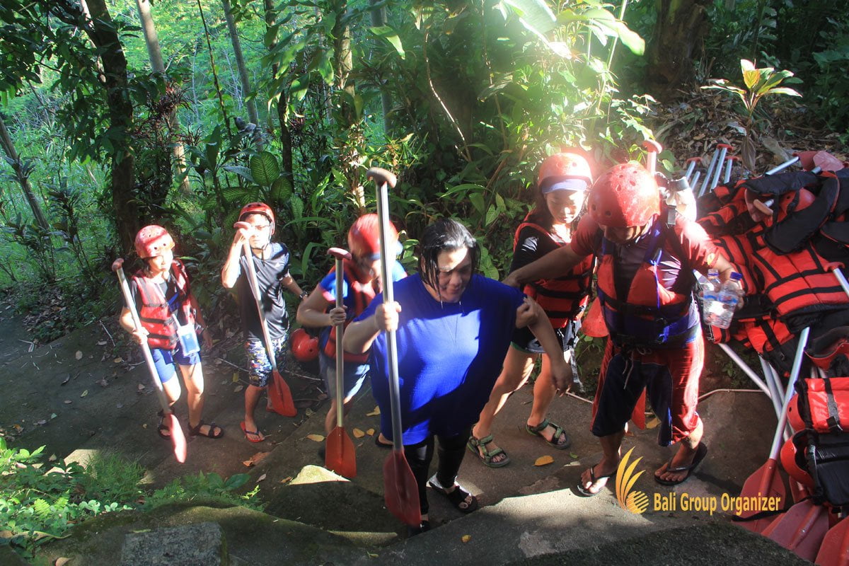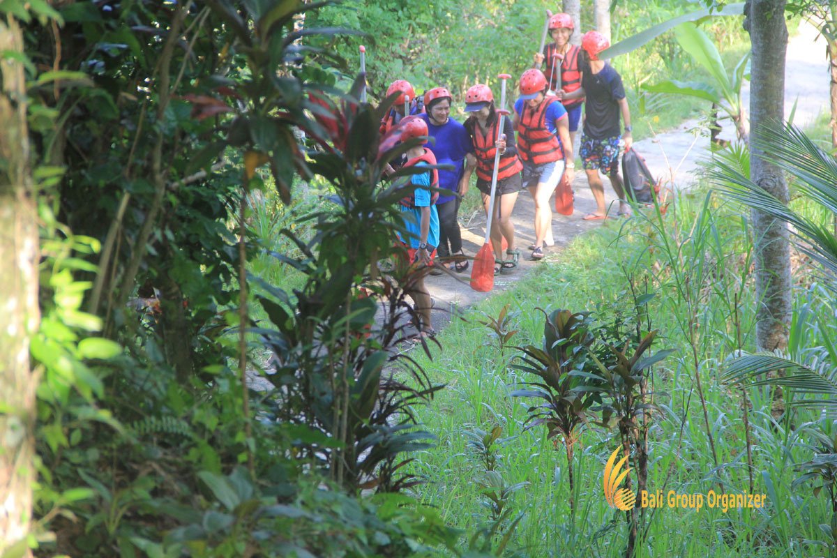 White Water River Rafting is the most fantastic water adventures in Bali that tourist much love it. The group has experienced this activity by step down at rafting start point. Then they explore the beauty of Ayung river with 3 rapids level within 2 hours. These activities are also as a Group Reference for other companies who interested with the adventures and team building. The river rafting start after the participants break the challenge at the starting point. The challenge could to break by a good teamwork, and good coordination. The participants must to break the challenge at the start point to continue their treasure hunting trip.