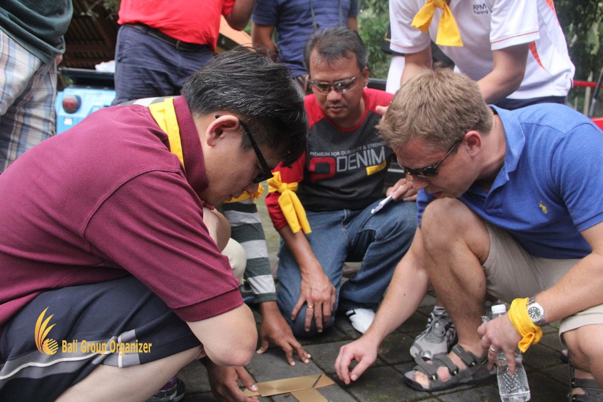 After warming up, New experiences with riding an VW Village Safari on Rice field, first destination located at Sangeh Monkey Forest. The Participant must break the team building challenge here to go to the next destination. They must break the wooden puzzle challenge and formula number challenge and work in a solid team.