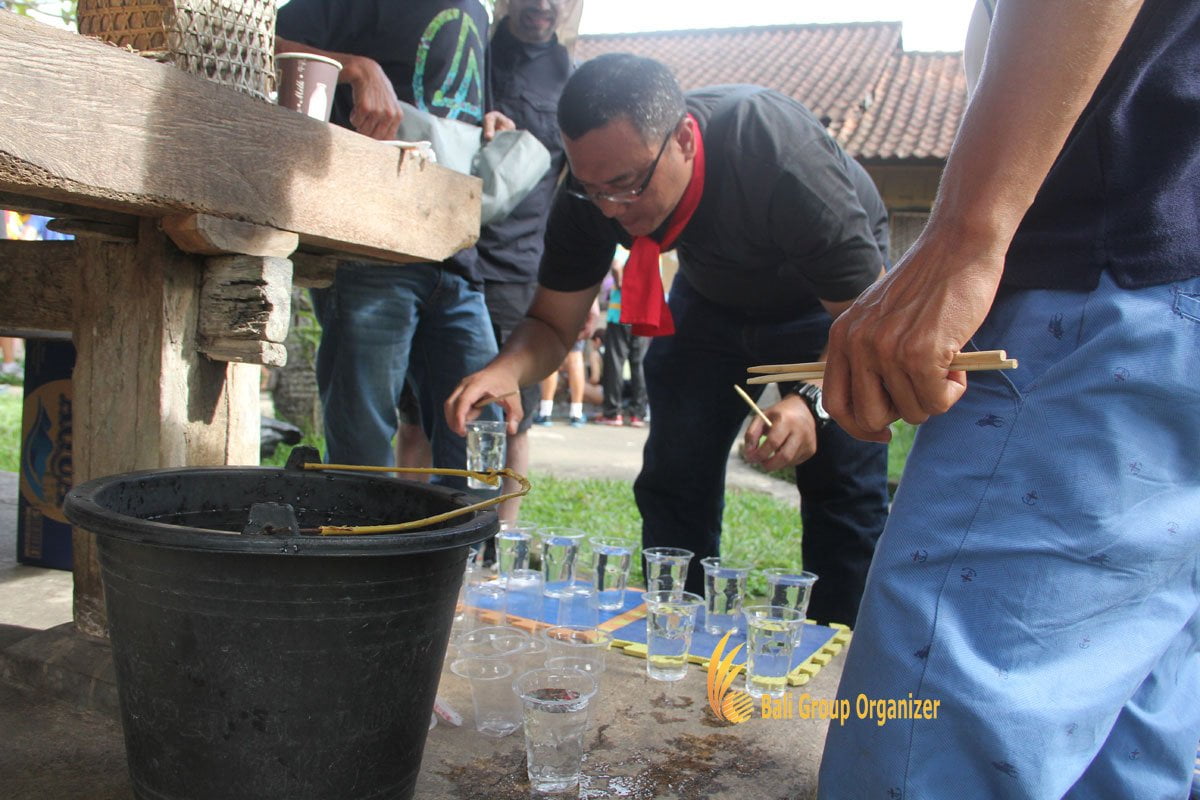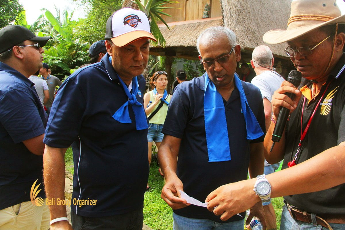 New experiences start with the amazing VW Village Safari to next stop point at Baha Traditional Village to get a Balinese simple lesson while enjoying the refreshment coffee break with traditional cake from Bali. Learned about Balinese language and met with the Balinese traditional housing concept also be a good experiences. In this point also set by team building challenge that must be break by the participant for finding the finish point.
