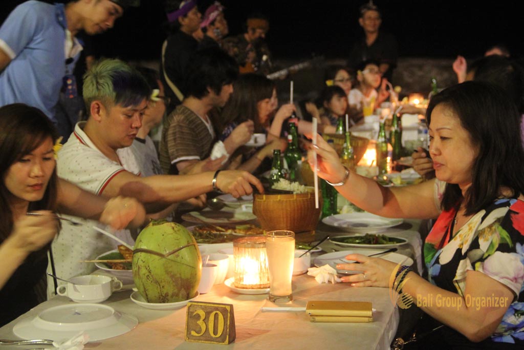After coming back from Uluwatu, this incentive group went to Jimbaran Beach to enjoy seafood dinner. Meanwhile, a romantic nuance of beautiful beach is coming with delicious seafood grill dinner complete this trip with lovely memory.