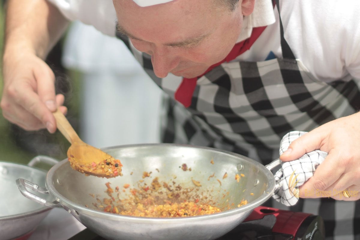 First of all, all group participants make the Appetizer dishes as a starter of MasterChef Cooking Competition. Afterward, they got challenges to make Balinese Basic Sauce or Base Gede.