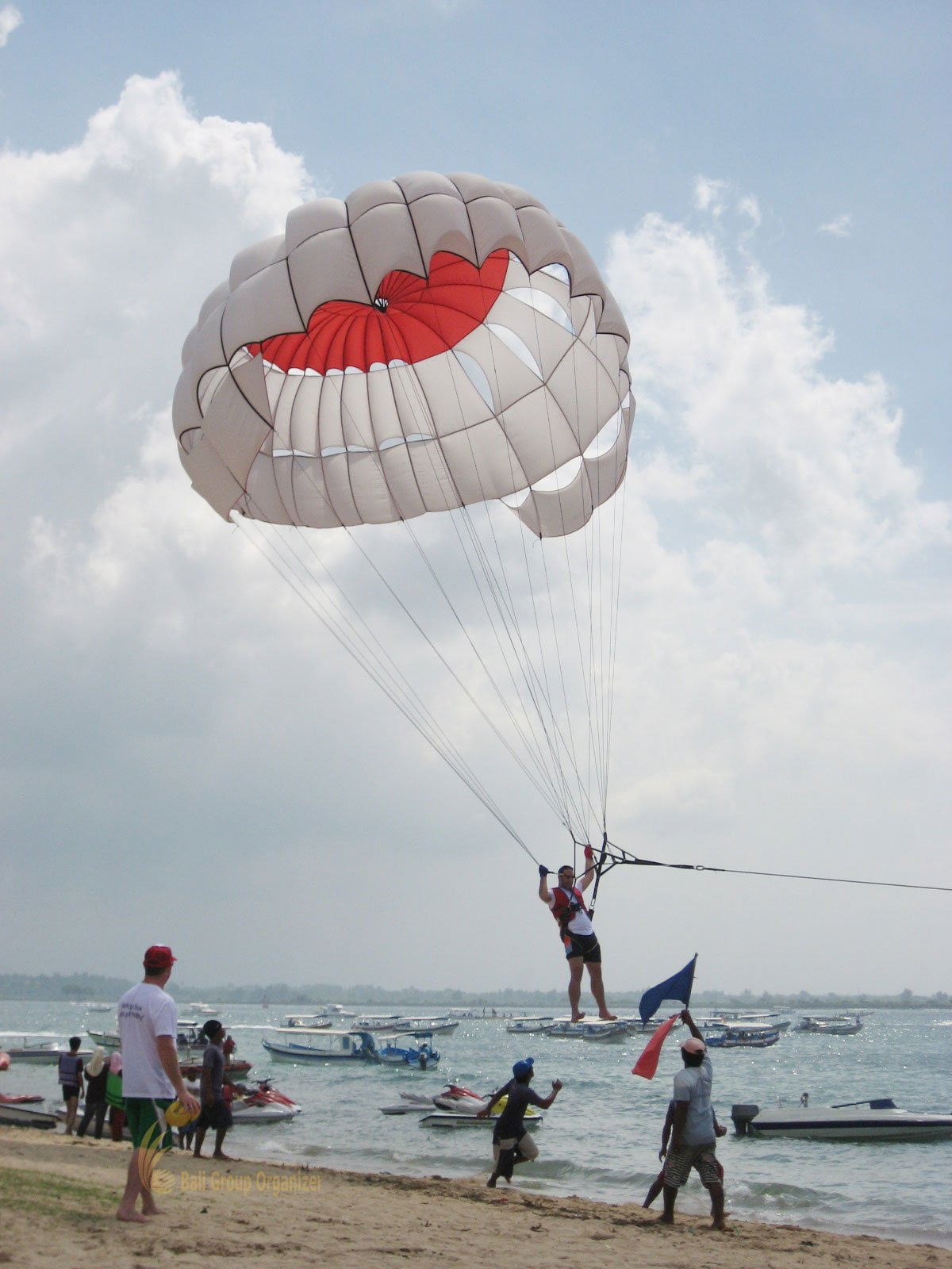 Philthy Group from Australia held Bali marine sport at Tanjung Benoa beach. This group has completed several water activities includes Parasailing, Banana Boat, Jet Ski, Water Ski, Fly Fish as well as Rolling Donut. Meanwhile, the group participants are all boys and lead by Mr. Luke Schmidt. It seems they have very much enjoyable on these outdoor activities where at the end of program we provide beach volley ball where they can do simple competition. The whole games are closed at 17.00 pm and send them back to the hotel afterward. Philthy Group is one of our customers that Bali Group Organizer has arranged successfully and it is also become our group references 2011 for your consideration to use our services.