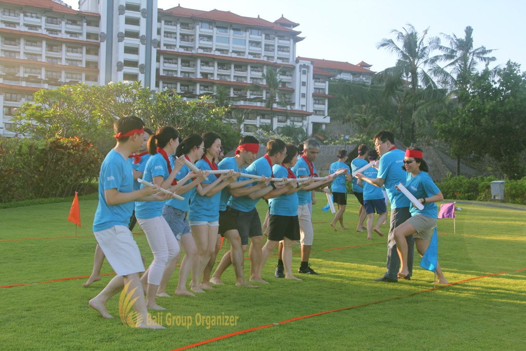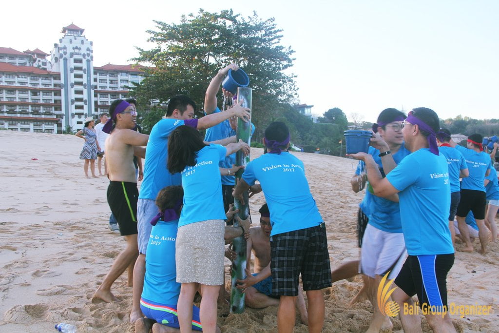 Score Global Life is an independent insurance company coming with 40 people staff for an incentive trip to Bali. To complete their business trip agenda, they have conducted an internal meeting and continued with beach activities for group bonding. They have appointed Bali Group Organizer to arrange a beach team building activity after short indoor class training. We have provided 7 fun games to encourage the group participants to remind and build strong teamwork, improve the communication, motivate them to win on global competitions and keep standing on the high integrity as well as innovation on each product selling. Our beach team building activity has responded to their requirements and brought them into fantastic experiences. It is one of our group references in 2017 for your references before using our services. You may discover other group references to collect more of our experiences.