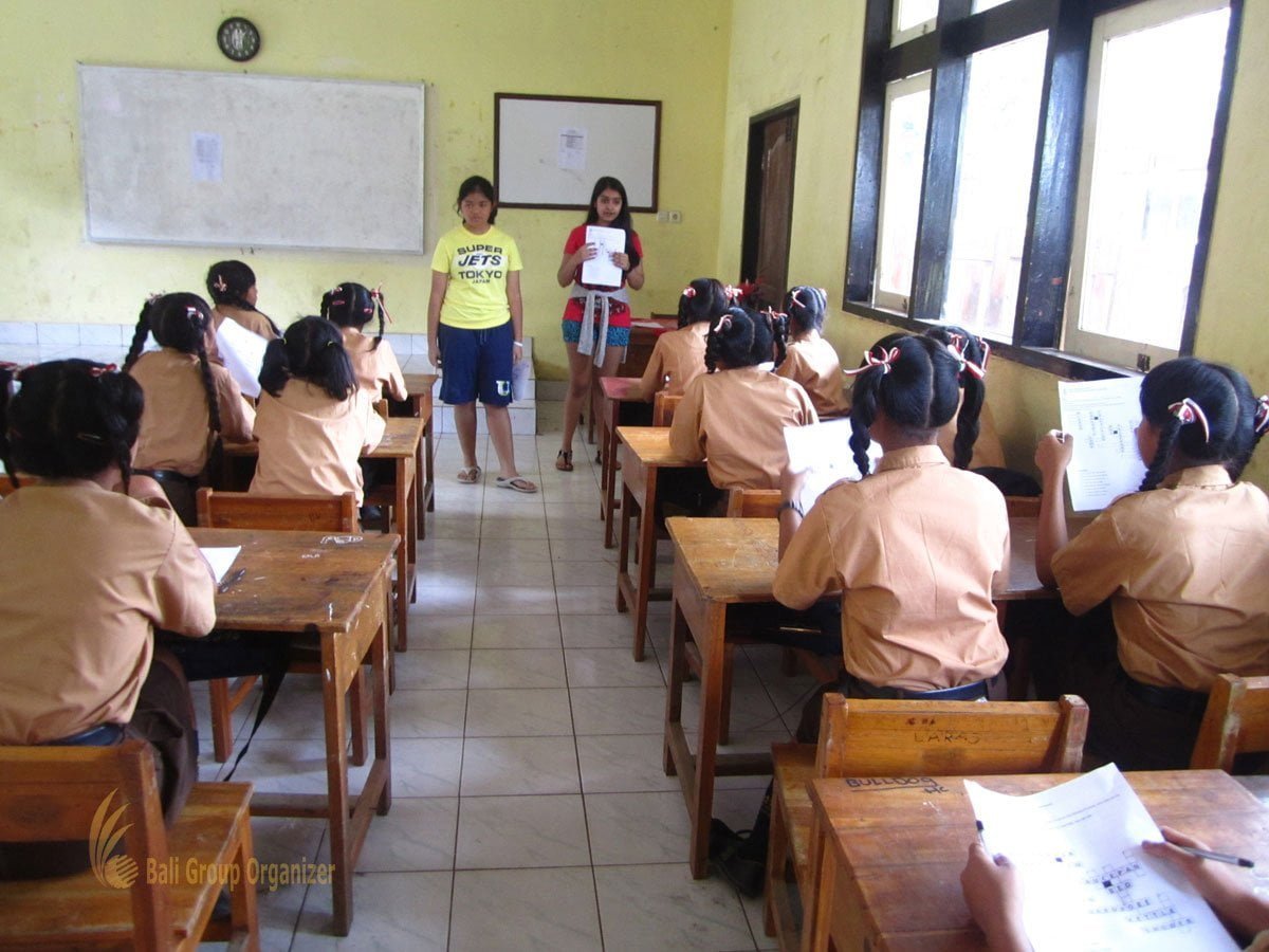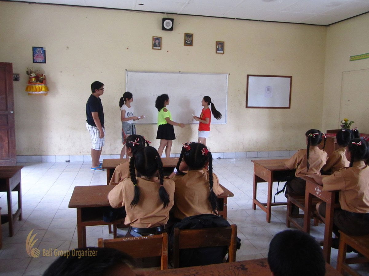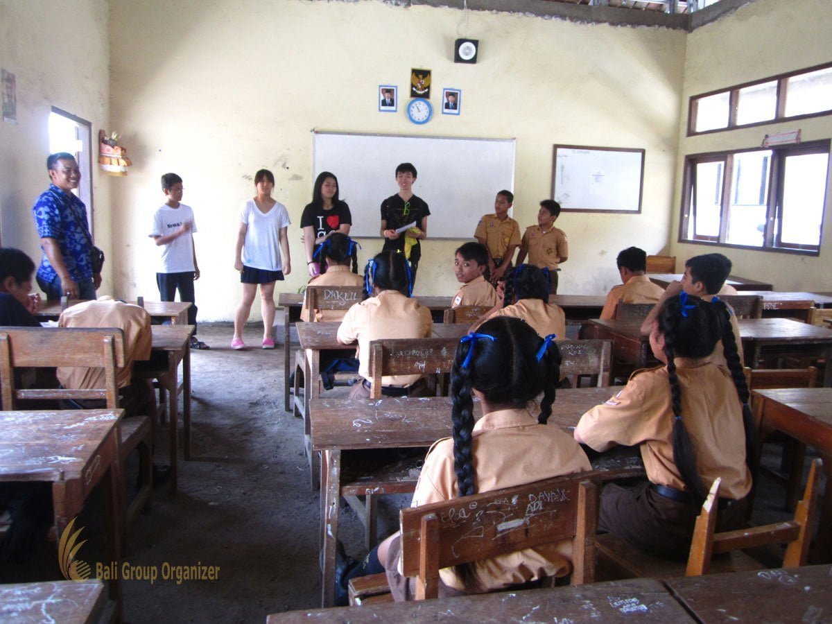 It is a new experience for them to explore the calm seawater in north part of Bali. The trip discover the cute dolphins living free in their habitat. Afterward, we back to south part of Bali and visit a local school with low grade of English. The student can explore their knowledge and share with them.