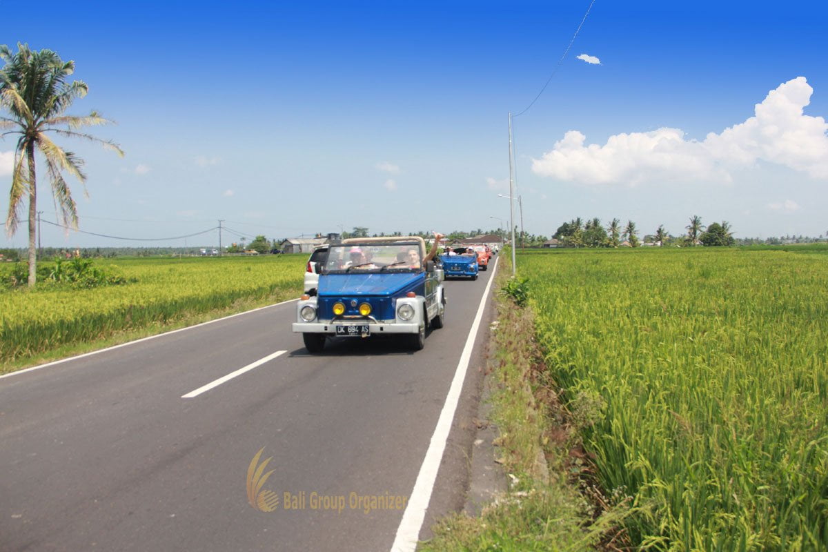 It is a fun trip we design to explore the countryside in Bali that offers complimentary beautiful scenery of rice field and charming smile from the local villagers when we pass through. We drive on sunny day with open air vehicles give them more enthusiasts and enjoy the trips.