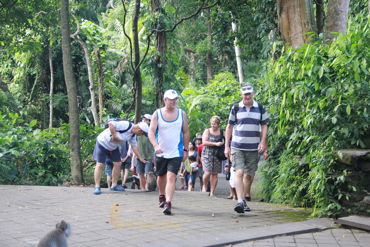 Ubud Monkey Forest is one of the famous tourist destinations to visit on this trip. When the group arrives, they have been welcome by the group of monkeys in a small rain forest which is located in the center of Ubud.