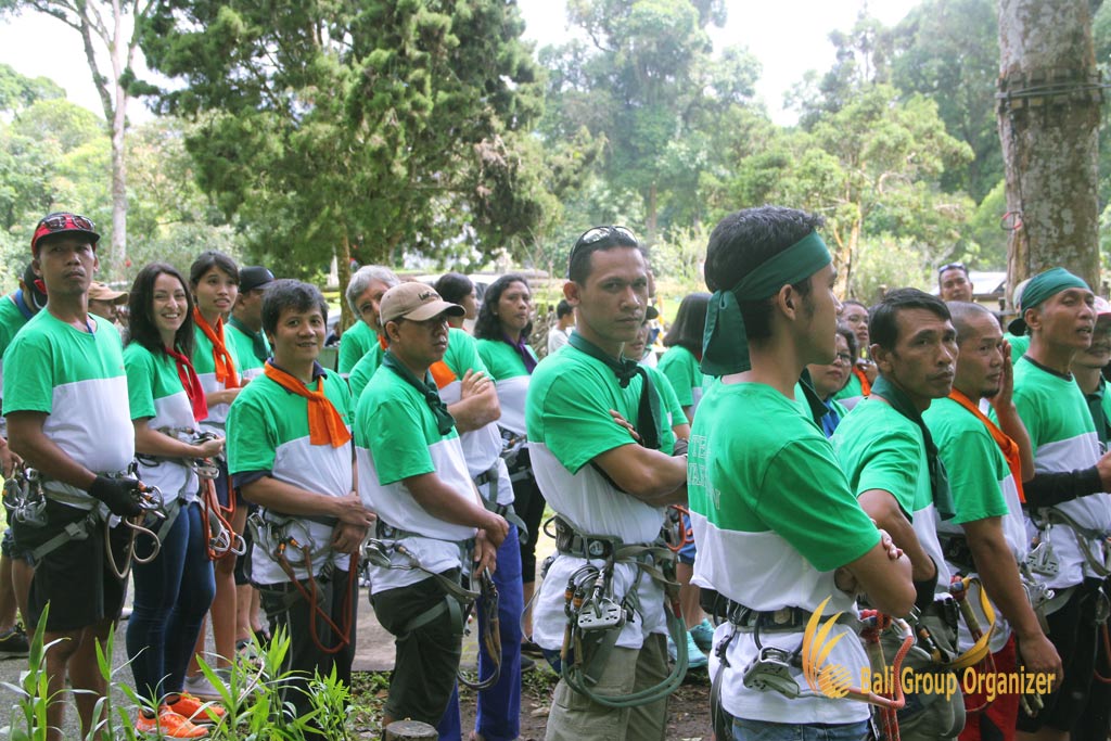 Warisan Hospitality Furniture is one of the leading furniture companies bases in Indonesia bring the manager staff for team building activity in Bali. Bali Group Organizer is again trusted to handle the activities for second time since last year was success. This year, they bring 55 manager staff from both office includes Bali and Banyuwangi for one day garden team building and Bali Treetop Adventure. Furthermore, we have assigned the fun activities to combine two fantastic activities within a day and bring them into the great challenges. We held these events at Bali Botanical Garden in Bedugul, around 2,5 hours from Bali’s International Airport.